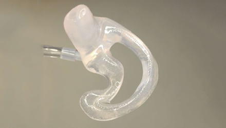 然而,由于尚沒有可以用于3D打印的軟性材料,軟耳模的制作一直采用傳統的手工澆鑄工藝,電子化流程的優勢沒法體現在軟耳模的定制服務上。現在通過工程師們不懈努力,終于實現了軟耳模的“3D打印”。
