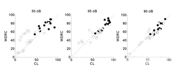 <span style="font-size:16px;"> 重度聽力損失是500Hz、1000Hz、2000Hz和4000Hz平均聽閾在61dB HL和80dB HL之間的聽力損失。重度聽損患者更趨向于:</span></p><p><span style="font-size:16px;"> ?。?)聽力損失時間較久;</span></p><p><span style="font-size:16px;"> (2)有助聽器佩戴史;</span></p><p><span style="font-size:16px;"> ?。?)言語分辨率較低;</span></p><p><span style="font-size:16px;"> (4)噪音環(huán)境中交流困難。</span></p><p><span style="font-size:16px;"> 1、重度聽力損失的特點</span></p><p><span style="font-size:16px;"> 60dB HL是單純外毛細胞損傷和內(nèi)外毛細胞共同損傷的分界點,內(nèi)毛細胞受損預(yù)示著重度聽力損失,這類患者的頻率選擇能力降低,在相關(guān)頻率范圍內(nèi)難以分辨兩種聲音。這是噪聲環(huán)境下交流困難的主要原因。</span></p><p><span style="font-size:16px;"> 簡單來說,頻率選擇能力越低,自身降噪能力越差,噪聲下識別信號的能力也就越差。</span></p><center><span style="font-size:16px;"><img alt="" src="/upfiles/20181016012659501.png" width="440" height="250" /></span></center><p></p><p><span style="font-size:16px;"> 2、選擇合適的放大策略</span></p><p><span style="font-size:16px;"> 反饋抑制:這項技術(shù)在傳統(tǒng)方法的基礎(chǔ)上有更好的減少嘯叫的效果。</span></p><p><span style="font-size:16px;"> 指向性麥克風(fēng):有指向性功能的助聽器可以明顯提高信噪比(SNR)。現(xiàn)在自適應(yīng)指向性麥克風(fēng)廣泛地應(yīng)用于大功率耳背機中。</span></p><p><span style="font-size:16px;"> 對于噪聲下言語交流困難的重度聽力損失患者,選配帶有指向性麥克風(fēng)的助聽器效果顯著。</span></p><p><span style="font-size:16px;"> 聽力學(xué)家對重度聽損人士的指向性麥克風(fēng)做過獲益度測試,發(fā)現(xiàn)平均言語識別能力提升了14%。</span></p><p><span style="font-size:16px;"> 重度聽損患者使用指向性功能時必須保證一定低頻增益,否則他們會感覺聲音不夠洪亮。</span></p><center><span style="font-size:16px;"><img alt="" src="/upfiles/201810160127134771.png" width="440" height="250" /></span></center><p></p><p><span style="font-size:16px;"> 寬動態(tài)范圍壓縮線路(WDRC):</span></p><p><span style="font-size:16px;"> 如下圖,白點是重度聽力損失患者的輔音識別得分,黑點是輕度至中度聽損患者的輔音識別得分;每位受試者佩戴四通道的耳背機,驗配采用NAL公式;測試言語聲強度分別為50dB SPL、65dB SPL和80dB SPL;比較WDRC和線性輸出壓縮限制(CL)兩種線路的得分。</span></p><center><span style="font-size:16px;"><img alt="" src="/upfiles/201810160127198326.png" width="600" height="240" /></span></center><p></p><p><span style="font-size:16px;"> 等分位于對角線附近代表兩種處理方式效果相似,得分位于對角線上方表示W(wǎng)DRC線路效果更好,而下方則表示CL線路效果更好。</span></p><p><span style="font-size:16px;"> 對重度聽損患者來說,輸入輕聲和中等聲時WDRC線路比CL線路效果更好;輸入響聲時兩種線路的區(qū)別并不大。所以使用WDRC線路可以獲得比CL線路更高的言語識別率。</span></p><p><span style="font-size:16px;"> 壓縮速度:壓縮越深可聽度越高,因為患者可以聽到更寬的聲音響度范圍。</span></p><p><span style="font-size:16px;"> 快反應(yīng)壓縮(起效和釋放時間很短)可以降低元音(響度較大)增益并提高輔音(響度較小)增益,從而提高可聽度。</span></p><p><span style="font-size:16px;"> 所以理論上來講,對于重度聽損人士,使用多通道助聽器、低壓縮拐點、高壓縮比、音節(jié)壓縮,可以最大程度提高驗配效果。</span></p><center><span style="font-size:16px;"><img alt="" src="/upfiles/201810160127304305.png" width="600" height="500" /></span></center><p></p><p><span style="font-size:16px;"> 但壓縮越深就意味著有聲音失真越大,音節(jié)壓縮丟失了重要言語信息,導(dǎo)致輔音分辨不清。若要保留這些信息,則需要慢反應(yīng)壓縮(起效和釋放時間較長)。</span></p><p><span style="font-size:16px;"> 最好的情況是在提高可聽度的同時還保證信號不失真,但目前很難實現(xiàn),找到二者的平衡點是最佳的選配方案。</span></p><center><span style="font-size:16px;"><img alt="" src="/upfiles/20181016012736476.png" width="440" height="250" /></span></center><p></p><p><span style="font-size:16px;"> 上圖為一組重度聽力損失患者選配快速和慢速WDRC線路的言語識別率對比。</span></p><p><span style="font-size:16px;"> 在輸入聲級為50和65 dB SPL時,快反應(yīng)壓縮線路的受試者得分明顯比慢反應(yīng)壓縮線路的受試者差;在80 dB SPL輸入聲級下則并無明顯差別。</span></p><p><span style="font-size:16px;"> 對輕度和中度聽力損失患者來說,無論何種輸入聲級,兩種壓縮方式的得分都沒有明顯差別(并未在圖中顯示)。</span></p><p><span style="font-size:16px;"> 對極重度聽力損失患者來說,可聽度比其他任何信息都重要,快反應(yīng)壓縮線路效果比慢反應(yīng)壓縮線路更好。</span></p><p><span style="font-size:16px;"> 綜上所述,在使用多通道WDRC線路助聽器前提下,一定程度的可聽度是必須的,在這個基礎(chǔ)上要追求最低的失真(最低的壓縮比以及最慢的壓縮),才能達到最好的驗配效果。</span></p><p><span style="font-size:16px;"> 我們經(jīng)常會遇到重度聽力損失患者,應(yīng)該找到適合他們的驗配策略并提供心理和生理咨詢。</span></p><p><span style="font-size:16px;"> 助聽器選配的效果受到外周及中樞聽覺系統(tǒng)的能力限制,重度感音神經(jīng)性聽