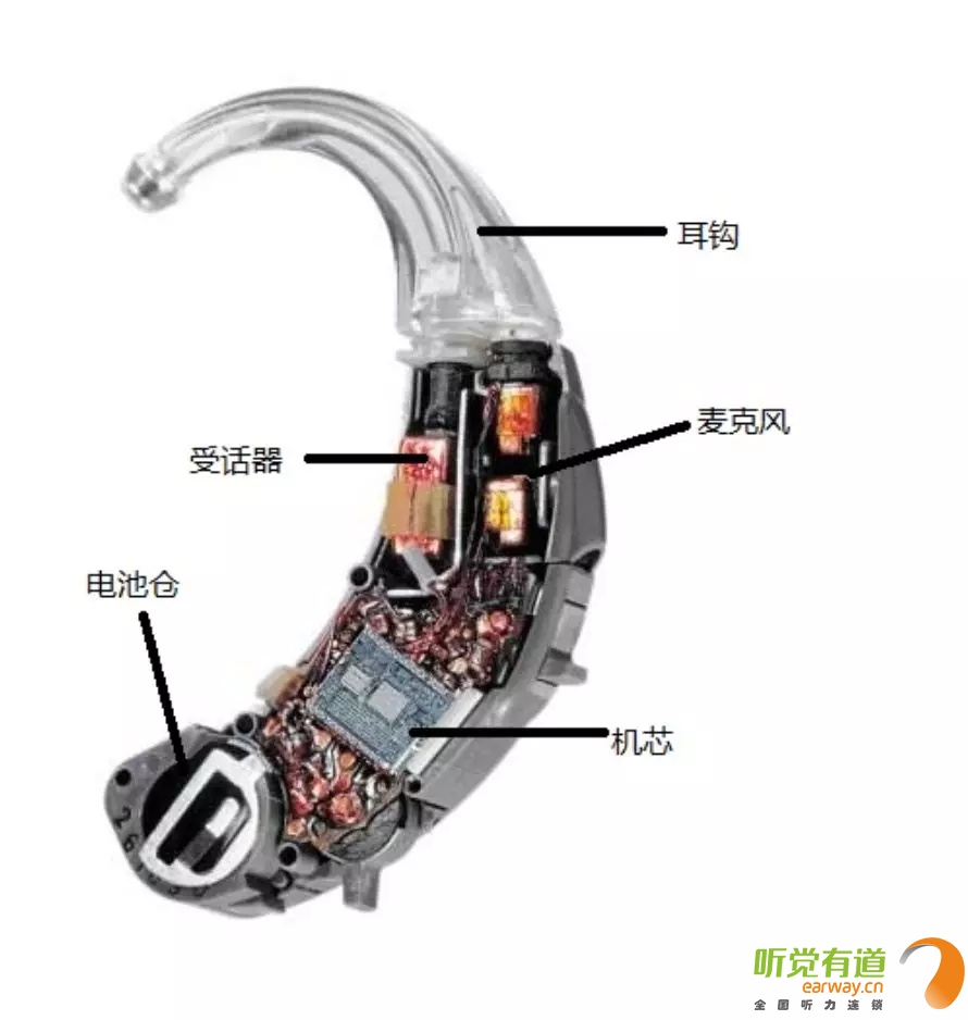 <span style="font-size:16px;"> 在助聽器發展過程中,出現過很多種助聽器,比如:盒式、眼鏡式、耳背式、耳甲腔式、耳道式、深耳道式等定制式助聽器。如今盒式助聽器、眼鏡式助聽器等幾乎已退出歷史舞臺,現在常見的助聽器有耳背式助聽器、定制式助聽器和RIE受話器外置式助聽器。</span></p><p style="text-align: center;"><span style="font-size:16px;"><img src="/upfiles/201808160127045435.jpg" width="640" alt="" /><br /></span></p><p><span style="font-size:16px;"> 接下來,我們將以耳背式助聽器為例,向您介紹助聽器的外部配件及內部構造!</span></p><p><span style="font-size:16px;"> 1、機身內部構造</span></p><p style="text-align: center;"><span style="font-size:16px;"><img src="/upfiles/201808160127276133.jpg" width="640" alt="" /><br /></span></p><p><span style="font-size:16px;"> 麥克風:獲取聲音并將聲音信號轉化為電信號。</span></p><p><span style="font-size:16px;"> 機芯:將電信號進行放大、處理,機芯包含放大器、音量調控電位器、微調電位器等。</span></p><p><span style="font-size:16px;"> 受話器:將電信號轉化為聲音信號,通過導聲管和耳模傳送給耳朵。耳背式助聽器和定制式助聽器的受話器都在機身內;RIE受話器外置式助聽器的受話器放置在耳道中。</span></p><p><span style="font-size:16px;"> 電池倉:用于安放電池來供電,使助聽器正常工作。</span></p><p><span style="font-size:16px;"> 2、電池</span></p><p><span style="font-size:16px;"> 電池放置于電池倉內,給予助聽器能量。市面上常見的助聽器電池分為4類:</span></p><p><span style="font-size:16px;"> A675:一般用于超大功率耳背式助聽器。</span></p><p><span style="font-size:16px;"> A13:一般用于標準耳背式或耳甲腔式助聽器。</span></p><p><span style="font-size:16px;"> A312:一般用于耳道式助聽器。</span></p><p><span style="font-size:16px;"> A10:一般用于深耳道式助聽器。</span></p><p><span style="font-size:16px;"> 電池大小:A675>A13>A312>A10,電池越大,儲存能量越多。</span></p><p><span style="font-size:16px;"></span></p><p> 更多詳情請登錄m.zqsjzx.cn。</p>" />