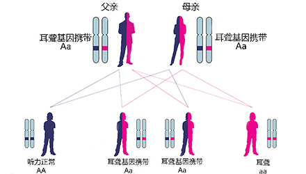 研究表明,約有60%的聽(tīng)損與遺傳有關(guān),目前已發(fā)現(xiàn)的聽(tīng)損相關(guān)基因近300個(gè)。在正常人群中約有5%-6%的人至少攜帶一種聽(tīng)損基因。</p><p> 你可能會(huì)問(wèn):</p><p> “哪幾個(gè)聽(tīng)損基因是最常見(jiàn)的?”</p><p> “我會(huì)不會(huì)攜帶聽(tīng)損基因?”</p><p> “遺傳的概率有多大?”</p><p> 全國(guó)性聾病分子流行病學(xué)調(diào)查結(jié)果顯示:</p><p> 21.01%的聾人攜帶GJB2基因突變,是中國(guó)最常見(jiàn)的致聾責(zé)任基因;大前庭導(dǎo)水管綜合征的責(zé)任基因SLC26A4是中國(guó)第二高發(fā)的致聾基因,其突變檢出率達(dá)12.7%;4.51%聾人攜帶線粒體12S rRNA基因突變,為藥物性聽(tīng)損群體的主體。</p><p> 接下來(lái),讓我們一一了解中國(guó)人常見(jiàn)的三大聽(tīng)損基因。</p><p> </p><center><img alt="" src="/upfiles/201904290149522154.png" width="440" height="250" /></center><p></p><p> GJB2基因—最常見(jiàn)的先天性致聾基因</p><p> GJB2基因突變?cè)?997年首次被發(fā)現(xiàn),它在兒童語(yǔ)前聾中占20%,在兒童非綜合征聽(tīng)損(NSHI)中占40%,是中國(guó)人最常見(jiàn)的致聾基因,在亞洲人群中最常見(jiàn)的突變位點(diǎn)為235delC。</p><p> 致聾原因:</p><p> 研究發(fā)現(xiàn),GJB2基因編碼一種稱為“間隙連接的β2蛋白”,這種連接蛋白通過(guò)調(diào)控鉀離子水平來(lái)維持相鄰細(xì)胞之間的信號(hào)傳導(dǎo)分子的轉(zhuǎn)運(yùn)。</p><p> GJB2基因在人類耳蝸中高度表達(dá),形成聽(tīng)覺(jué)的過(guò)程中需要將聲波轉(zhuǎn)換為神經(jīng)沖動(dòng),這種轉(zhuǎn)化涉及許多過(guò)程,包括維持內(nèi)耳中適當(dāng)水平的鉀離子,突變的GJB2基因會(huì)對(duì)耳蝸的正常的聽(tīng)覺(jué)功能造成嚴(yán)重影響。</p><p> 聽(tīng)力損失表現(xiàn):</p><p> GJB2相關(guān)性聽(tīng)損一般為先天性,雙耳同時(shí)受累,聽(tīng)損程度呈對(duì)稱性,少數(shù)表現(xiàn)為不對(duì)稱性,也有單耳受累報(bào)道。GJB2基因突變?cè)斐傻穆?tīng)力損失程度從輕度到集中度不等,大多表現(xiàn)為重度或極重度聽(tīng)損。</p><p> 遺傳方式:</p><p> GJB2基因突變屬于常染色體隱性遺傳,這也就意味著兩個(gè)攜帶該突變基因的正常父母有概率會(huì)生出一個(gè)患兒。</p><p> 孩子聽(tīng)損還是不聽(tīng)損由兩個(gè)等位基因決定(A和a),兩個(gè)等位基因一個(gè)來(lái)自父親,一個(gè)來(lái)自母親,生育的時(shí)候父母各自隨機(jī)出一個(gè)等位基因“拼成”孩子的一對(duì)等位基因。</p><p> 舉個(gè)白話淺顯的例子:</p><p> A是顯性的,a是隱性的,也就是說(shuō)A是“大哥”,a是“小弟”。</p><p> 有A在的時(shí)候,a聽(tīng)A的;沒(méi)有A的時(shí)候,“小弟”a可能就“胡作非為”了。</p><p> 在這里,GJB2基因突變屬于常染色體隱性遺傳,“大哥”A是聽(tīng)力正常的,“小弟”a是聽(tīng)力不正常的。</p><p> 當(dāng)“大哥”A不在,而兩個(gè)“小弟”a聚在一起的時(shí)候,它們就合伙搗亂,把孩子的耳朵“關(guān)上了”。</p><p> </p><center><img alt="" src="/upfiles/20190429014959343.png" width="440" height="250" /></center><p></p><p> 假設(shè)其他聽(tīng)損相關(guān)基因均正常,不考慮概率極小的自身突變,僅討論GJB2基因:</p><p> 父母中只要有一個(gè)不攜帶該突變基因(AA+AA/Aa/aa)——孩子100%正常;</p><p> 父母均攜帶該突變基因(Aa+Aa)——孩子75%正常;</p><p> 父母中一個(gè)攜帶該突變基因而一個(gè)聽(tīng)損(Aa+aa)——孩子50%正常;</p><p> 父母均聽(tīng)損(aa+aa)——孩子0%正常。</p><p> 怎么辦:</p><p> 由于GJB2基因突變?cè)斐傻穆?tīng)力損失程度多為重度或極重度,并且聽(tīng)覺(jué)系統(tǒng)的結(jié)構(gòu)基本正常,常提示人工耳蝸植入效果良好。</p><p> 最好的辦法是通過(guò)新生兒聽(tīng)力篩查及聽(tīng)損基因篩查盡早發(fā)現(xiàn)并確診病因,盡早進(jìn)行人工耳蝸植入,以保證聽(tīng)覺(jué)言語(yǔ)能力的正常發(fā)展。</p><p> SLC26A4基因--大前庭導(dǎo)水管相關(guān)致聾基因</p><p> SLC26A4基因定位于人類染色體7q31,SLC26A4基因和大前庭導(dǎo)水管綜合征相關(guān)突變位點(diǎn)的發(fā)現(xiàn),證實(shí)SLC26A4是大前庭導(dǎo)水管綜合征的責(zé)任基因。</p><p> 我們平時(shí)提到的“一巴掌打聾”、“一跤摔聾”其實(shí)都與SLC26A4基因突變有關(guān),絕大多數(shù)大前庭導(dǎo)水管綜合征都是SLC26A4基因突變?nèi)堑牡湣?lt;/p><p> 致聾原因:</p><p> SLC26A4基因編碼一種叫“Pendrin”的跨膜轉(zhuǎn)運(yùn)蛋白,在機(jī)體離子成分平衡的維持中發(fā)揮重要作用。</p><p> 在內(nèi)耳,Pendrin表達(dá)于內(nèi)淋巴管、內(nèi)淋巴囊、橢圓囊、球囊等處,異變的蛋白將對(duì)這些結(jié)構(gòu)的正常生理功能產(chǎn)生影響,引發(fā)聽(tīng)損。</p><p> </p><center><img alt="" src="/upfiles/201904290150051947.png" width="440" height="250" /></center><p></p><p> 聽(tīng)力損失表現(xiàn):</p><p> SLC26A4基因突變導(dǎo)致的大前庭導(dǎo)水管綜合征的典型表現(xiàn)為兒童時(shí)期的聽(tīng)力損失,90%的患者為雙側(cè)性,聽(tīng)力損失程度不一,可表現(xiàn)為接近正常或重-極重度。</p><p> 病程可為穩(wěn)定性、進(jìn)行性或波動(dòng)性,聽(tīng)力可逐步下降至全聾;跌倒、撞擊等行為或無(wú)外界影響都可能引發(fā)聽(tīng)力的下降。</