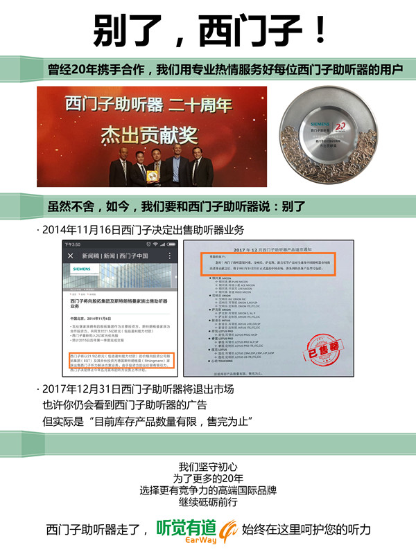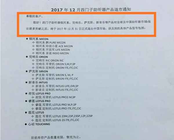 <p microsoft="" yahei="" ui="" simsun="" segoe="" tahoma="" helvetica="" sans-serif="" font-size:="" 14px="" text-align:="" center="" style="padding: 5px 0px; margin: 0px; color: rgb(51, 51, 51); font-family: "Microsoft YaHei UI", "Microsoft YaHei", SimSun, "Segoe UI", Tahoma, Helvetica, sans-serif; font-size: 16px; text-align: center;"><img src="http://m.zqsjzx.cn/upfiles/201712110502357735.jpg" alt="" style="border: 0px;" /></p><p microsoft="" yahei="" ui="" simsun="" segoe="" tahoma="" helvetica="" sans-serif="" font-size:="" 14px="" text-align:="" center="" style="padding: 5px 0px; margin: 0px; color: rgb(51, 51, 51); font-family: "Microsoft YaHei UI", "Microsoft YaHei", SimSun, "Segoe UI", Tahoma, Helvetica, sans-serif; font-size: 16px; text-align: center;"><br /></p><p microsoft="" yahei="" ui="" simsun="" segoe="" tahoma="" helvetica="" sans-serif="" font-size:="" 14px="" text-align:="" center="" style="padding: 5px 0px; margin: 0px; color: rgb(51, 51, 51); font-family: "Microsoft YaHei UI", "Microsoft YaHei", SimSun, "Segoe UI", Tahoma, Helvetica, sans-serif; font-size: 16px; text-align: center;"><img src="http://m.zqsjzx.cn/upfiles/201712201117438957.jpg" alt="" style="border: 0px;" /><br /></p><p microsoft="" yahei="" ui="" simsun="" segoe="" tahoma="" helvetica="" sans-serif="" font-size:="" 14px="" text-align:="" center="" style="padding: 5px 0px; margin: 0px; color: rgb(51, 51, 51); font-family: "Microsoft YaHei UI", "Microsoft YaHei", SimSun, "Segoe UI", Tahoma, Helvetica, sans-serif; font-size: 16px; text-align: center;"><br /></p><p microsoft="" yahei="" ui="" simsun="" segoe="" tahoma="" helvetica="" sans-serif="" font-size:="" 14px="" text-align:="" center="" style="padding: 5px 0px; margin: 0px; color: rgb(51, 51, 51); font-family: "Microsoft YaHei UI", "Microsoft YaHei", SimSun, "Segoe UI", Tahoma, Helvetica, sans-serif; font-size: 16px; text-align: center;">2014年11月16日西門子決定出售助聽器業(yè)務</p><p microsoft="" yahei="" ui="" simsun="" segoe="" tahoma="" helvetica="" sans-serif="" font-size:="" 14px="" text-align:="" center="" style="padding: 5px 0px; margin: 0px; color: rgb(51, 51, 51); font-family: "Microsoft YaHei UI", "Microsoft YaHei", SimSun, "Segoe UI", Tahoma, Helvetica, sans-serif; font-size: 16px; text-align: center;"> </p><center microsoft="" yahei="" ui="" simsun="" segoe="" tahoma="" helvetica="" sans-serif="" font-size:="" 14px="" style="color: rgb(51, 51, 51); font-family: "Microsoft YaHei UI", "Microsoft YaHei", SimSun, "Segoe UI", Tahoma, Helvetica, sans-serif; font-size: 16px;"><img src="http://m.zqsjzx.cn/upfiles/20171211050740709.jpg" alt="" style="border: 0px;" /><br /></center><center microsoft="" yahei="" ui="" simsun="" segoe="" tahoma="" helvetica="" sans-serif="" font-size:="" 14px="" style="color: rgb(51, 51, 51); font-family: "Microsoft YaHei UI", "Microsoft YaHei", SimSun, "Segoe UI", Tahoma, Helvetica, sans-serif; font-size: 16px;"><br /></center><p microsoft="" yahei="" ui="" simsun="" segoe="" tahoma="" helvetica="" sans-serif="" font-size:="" 14px="" text-align:="" center="" style="padding: 5px 0px; margin: 0px; color: rgb(51, 51, 51); font-family: "Microsoft YaHei UI", "Microsoft YaHei", SimSun, "Segoe UI", Tahoma, Helvetica, sans-serif; font-size: 16px; text-align: center;">2017年12月31日西門子助聽器將正式退出中國市場</p><p microsoft="" yahei="" ui="" simsun="" segoe="" tahoma="" helvetica="" sans-serif="" font-size:="" 14px="" text-align:="" center="" style="padding: 5px 0px; margin: 0px; color: rgb(51, 51, 51); font-family: "Microsoft YaHei UI", "Microsoft YaHei", SimSun, "Segoe UI", Tahoma, Helvetica, sans-serif; font-size: 16px; text-align: center;"> </p><center microsoft="" yahei="" ui="" simsun="" segoe="" tahoma="" helvetica="" sans-serif="" font-size:="" 14px="" style="color: rgb(51, 51, 51); font-family: "Microsoft YaHei UI", "Microsoft YaHei", SimSun, "Segoe UI", Tahoma, Helvetica, sans-serif; font-size: 16px;"><img src="http://m.zqsjzx.cn/upfiles/201712110508305244.png" alt="" style="border: 0px;" /><br /></center><center microsoft="" yahei="" ui="" simsun="" segoe="" tahoma="" helvetica="" sans-serif="" font-size:="" 14px="" style="color: rgb(51, 51, 51); font-family: "Microsoft YaHei UI", "Microsoft YaHei", SimSun, "Segoe UI", Tahoma, Helvetica, sans-serif; font-size: 16px;"><br /></center><p microsoft="" yahei="" ui="" simsun="" segoe="" tahoma="" helvetica="" sans-serif="" font-size:="" 14px="" text-align:="" center="" style="padding: 5px 0px; margin: 0px; color: rgb(51, 51, 51); font-family: "Microsoft YaHei UI", "Microsoft YaHei", SimSun, "Segoe UI", Tahoma, Helvetica, sans-serif; font-size: 16px; text-align: center;">銀河系、交響樂、薩克斯、新音樂、荷悅、睿蓮、蓮花、心動……</p><p microsoft="" yahei="" ui="" simsun="" segoe="" tahoma="" helvetica="" sans-serif="" font-size:="" 14px="" text-align:="" center="" style="padding: 5px 0px; margin: 0px; color: rgb(51, 51, 51); font-family: "Microsoft YaHei UI", "Microsoft YaHei", SimSun, "Segoe UI", Tahoma, Helvetica, sans-serif; font-size: 16px; text-align: center;">西門子助聽器系列產(chǎn)品悉數(shù)退市</p><p microsoft="" yahei="" ui="" simsun="" segoe="" tahoma="" helvetica="" sans-serif="" font-size:="" 14px="" text-align:="" center="" style="padding: 5px 0px; margin: 0px; color: rgb(51, 51, 51); font-family: "Microsoft YaHei UI", "Microsoft YaHei", SimSun, "Segoe UI", Tahoma, Helvetica, sans-serif; font-size: 16px; text-align: center;"> </p><center microsoft="" yahei="" ui="" simsun="" segoe="" tahoma="" helvetica="" sans-serif="" font-size:="" 14px="" style="color: rgb(51, 51, 51); font-family: "Microsoft YaHei UI", "Microsoft YaHei", SimSun, "Segoe UI", Tahoma, Helvetica, sans-serif; font-size: 16px;"><img src="http://m.zqsjzx.cn/upfiles/201712110509096639.jpg" alt="" style="border: 0px;" /><br /></center><p microsoft="" yahei="" ui="" simsun="" segoe="" tahoma="" helvetica="" sa