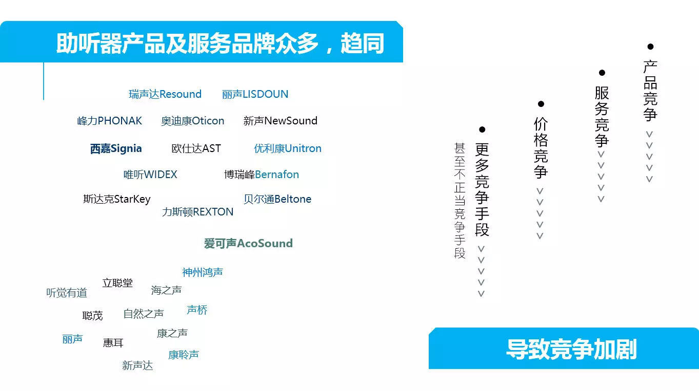 <span style="font-size:16px;"> 2018 年 11 月 16 日,由北京聽(tīng)力協(xié)會(huì)主辦、聽(tīng)力服務(wù)行業(yè)委員會(huì)協(xié)辦的“2018新聲代聽(tīng)力行業(yè)峰會(huì)”在蘇州圓滿閉幕。來(lái)自全國(guó)各地的助聽(tīng)器驗(yàn)配師、門(mén)店經(jīng)營(yíng)者、國(guó)內(nèi)外制造商和經(jīng)銷(xiāo)商的管理者共 200 多人參加了大會(huì)。本次大會(huì)歷時(shí) 3 天,會(huì)議包含了 1 個(gè)小型成員會(huì)、1 場(chǎng)晚宴、1 場(chǎng)重要發(fā)布會(huì)、4 場(chǎng)主題論壇、1 場(chǎng)案例分析、2 場(chǎng)圓桌論壇、3 場(chǎng)企業(yè)走訪,共20位主題演講嘉賓和10位圓桌論壇嘉賓做了精彩分享。</span></p><p><span style="font-size:16px;"><img src="/upfiles/201812180855261075.jpg" alt="" /><br /></span></p><span style="font-size:16px;"> 李鵬,愛(ài)可聲品牌助聽(tīng)器創(chuàng)始人,杭州愛(ài)聽(tīng)科技有限公司董事長(zhǎng);浙江大學(xué)生物醫(yī)學(xué)工程專(zhuān)業(yè)博士;浙江大學(xué)e-works創(chuàng)業(yè)實(shí)驗(yàn)室創(chuàng)業(yè)導(dǎo)師;浙江大學(xué)十佳創(chuàng)業(yè)之星;浙江大學(xué)校友會(huì)理事;全國(guó)助聽(tīng)器人工耳蝸專(zhuān)業(yè)委員會(huì)會(huì)員;中國(guó)儀器儀表學(xué)會(huì)理事。<br /> 11月16日上午,在2018新聲代聽(tīng)力行業(yè)峰會(huì)“大市場(chǎng)大競(jìng)合”的主題論壇中,來(lái)自愛(ài)可聲品牌助聽(tīng)器創(chuàng)始人李鵬先生做了 “國(guó)產(chǎn)助聽(tīng)器品牌如何差異化發(fā)展”的主題發(fā)言。<br /></span><p><span style="font-size:16px;"> 目前中國(guó)聽(tīng)力行業(yè),正是產(chǎn)品品牌、服務(wù)品牌百花齊放的時(shí)代。中國(guó)擁有超過(guò)10家產(chǎn)品品牌。對(duì)于經(jīng)銷(xiāo)商來(lái)講,面對(duì)產(chǎn)品品牌的選擇異常多。在當(dāng)下,產(chǎn)品、服務(wù)越來(lái)越趨同,這也意味著市場(chǎng)競(jìng)爭(zhēng)將非常激烈。</span></p><p><span style="font-size:16px;"><img src="/upfiles/201812180856004630.jpg" alt="" /><br /></span></p><span style="font-size:16px;"> 有競(jìng)爭(zhēng),就會(huì)有利有弊。<br /> 利:產(chǎn)品競(jìng)爭(zhēng),可以促使廠商不斷創(chuàng)新技術(shù)、推出更高性能的產(chǎn)品。服務(wù)品牌競(jìng)爭(zhēng),使服務(wù)商越來(lái)越專(zhuān)業(yè),更好的服務(wù)于客戶。<br /> 弊:惡意的價(jià)格競(jìng)爭(zhēng),導(dǎo)致終端客戶享受的綜合服務(wù)可能不是最優(yōu)。<br /> 面對(duì)如此市場(chǎng),如何破局?李先生強(qiáng)調(diào)主要在“差異化”。<br /> 李先生先引用了孫子兵法里的一句話:“凡戰(zhàn)者,以正合,以奇勝;故善出奇者,無(wú)窮如天地,不竭如江海”。想要破局,就要尋找可發(fā)展的空間。如電商領(lǐng)域,當(dāng)大家覺(jué)得天貓、京東已經(jīng)壟斷了中國(guó)電商行業(yè),很難再有新的獨(dú)角獸公司時(shí),拼多多用三年的時(shí)間做到銷(xiāo)售額上千億。這正說(shuō)明了市場(chǎng)發(fā)展的無(wú)限潛力,即使是在電商這樣競(jìng)爭(zhēng)異常激烈的行業(yè)。<br /></span><p><span style="font-size:16px;"> 接著李先生用中國(guó)手機(jī)品牌的崛起舉例說(shuō)明,中國(guó)手機(jī)品牌是如何找到自己的差異化并獲得成功。</span></p><p><span style="font-size:16px;"><img src="/upfiles/20181218085700170.jpg" alt="" /><br /></span></p><span style="font-size:16px;"> 那助聽(tīng)器行業(yè)如何差異化呢?李先生分享了以下四點(diǎn)。<br /> 1.助聽(tīng)器品牌切入的差異化<br /> 分析市場(chǎng)情況,尋找市場(chǎng)空白點(diǎn)(痛點(diǎn),盲點(diǎn),關(guān)鍵點(diǎn));分析自身所長(zhǎng),明確自身目標(biāo),確定品牌定位,如:麗聲的引以為傲的定制式助聽(tīng)器。<br /> 2.產(chǎn)品差異性<br /> 功能、性能、定價(jià)。如:<a href="http://m.zqsjzx.cn/productsInfo-100596.html" target="_blank"><span style="color:#3333ff;"><strong>峰力助聽(tīng)器</strong></span></a>的美人魚(yú),主推防水功能;新聲的Bee,主推通用耳道機(jī);愛(ài)可聲的紅寶石,主推隱形助聽(tīng)器等等。<br /> 3.市場(chǎng)差異化<br /> 將中心放在國(guó)內(nèi)還是國(guó)外,側(cè)重線上還是線下的開(kāi)拓,開(kāi)荒三四線還是深耕一二線? 不同的助聽(tīng)器品牌根據(jù)自身企業(yè)特點(diǎn)有著各自不同的選擇。<br /> 4.商業(yè)模式差異化、組織形式差異化<br /> 李先生分享了愛(ài)可聲助聽(tīng)器公司的一些感悟及對(duì)行業(yè)的未來(lái)的展望。<br /> 愛(ài)可聲感悟:守正出奇與雙S增長(zhǎng)曲線雙劍合并。當(dāng)公司在華麗增長(zhǎng)時(shí),公司的增長(zhǎng)也許已經(jīng)處于增長(zhǎng)曲線的末端,再繼續(xù)競(jìng)爭(zhēng)下去,曲線可能保持不變或者下滑。這時(shí)就需要出奇開(kāi)辟新的增長(zhǎng)曲線,尋找新的差異化。當(dāng)曲線在華麗增長(zhǎng)時(shí),重心應(yīng)在出奇上,開(kāi)拓增長(zhǎng)點(diǎn)。當(dāng)開(kāi)拓新增點(diǎn),尋找到差異化后,重心應(yīng)在守正上,在尋找到差異化后應(yīng)不斷完善細(xì)節(jié)。出奇是引子,守正才是快速增長(zhǎng)的方式。<br /> 李先生最后對(duì)行業(yè)未來(lái)做了展望。從大趨勢(shì)上說(shuō),機(jī)會(huì)依舊非常多。<br /> 老齡化社會(huì)的到來(lái)——新一代老年