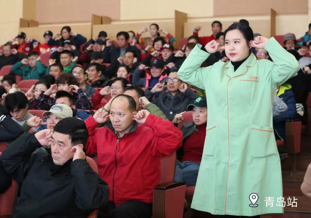 要想全身少得病,勤揉耳朵以聆聽。做完耳保健操,大家的精神明顯更好了,聽起講座來也更加專注認真!