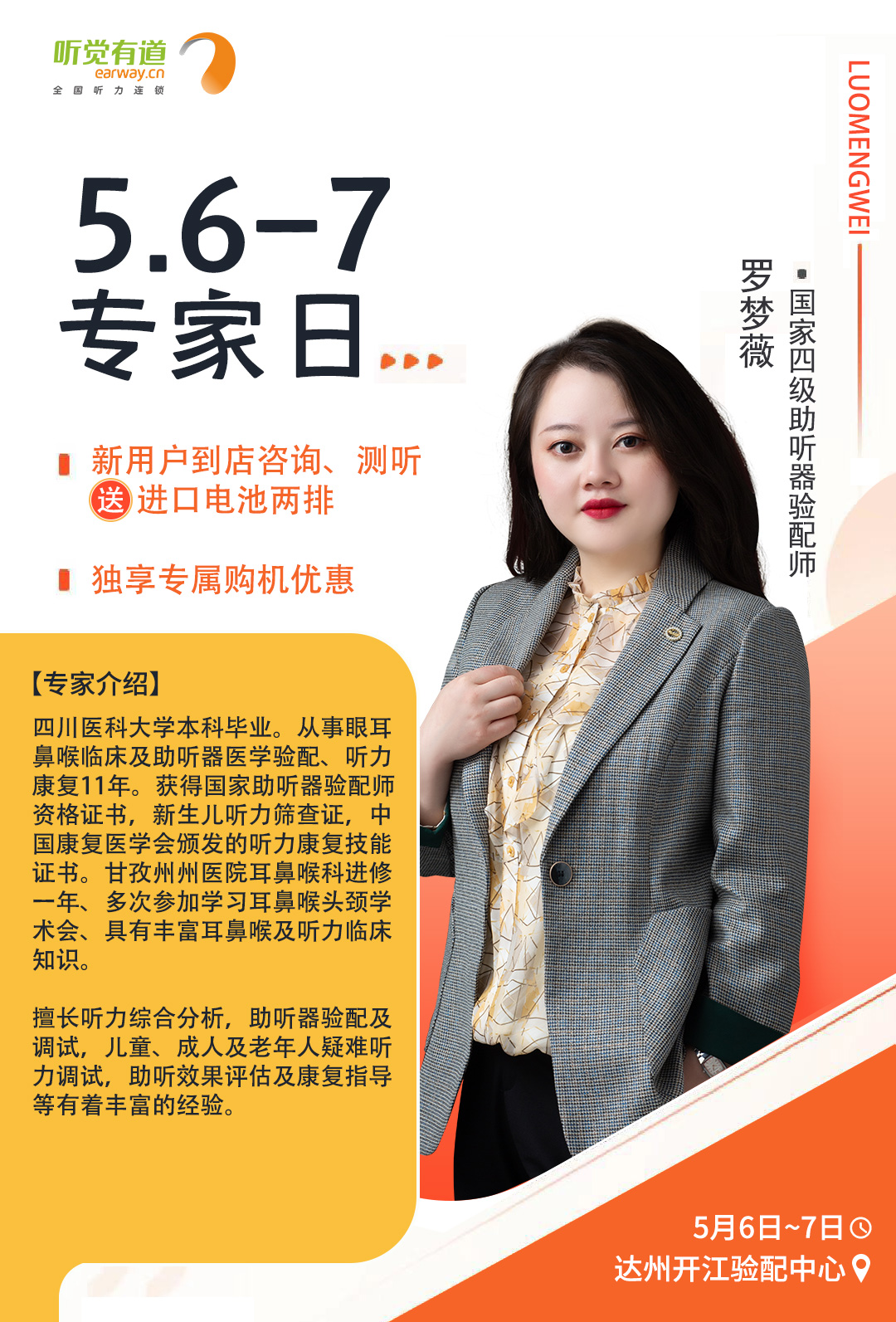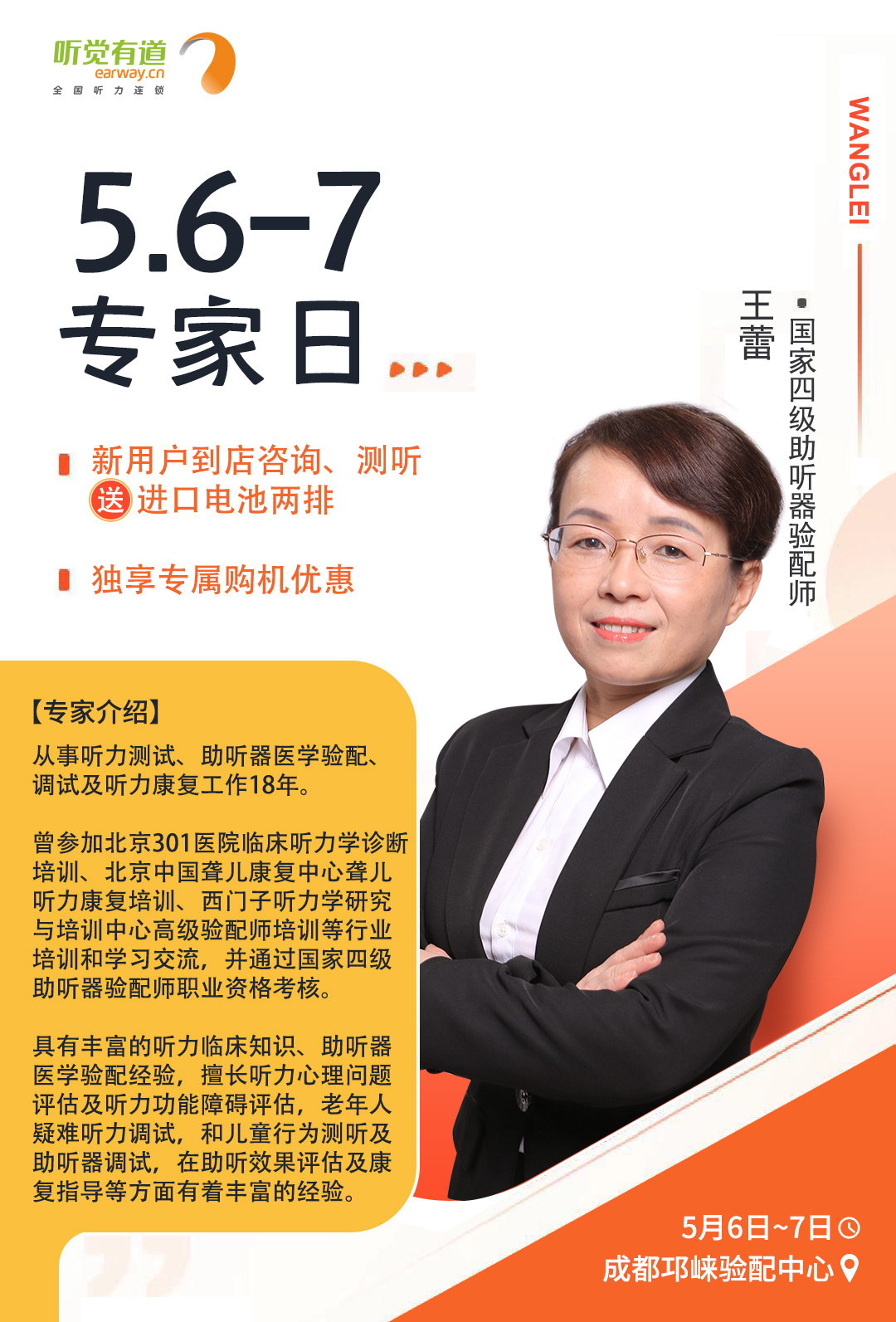 專家日現場,聽覺有道金牌聽力專家將為您解答聽力相關問題,調試和驗配助聽器,讓您能夠更好地聆聽這個世界的美好。