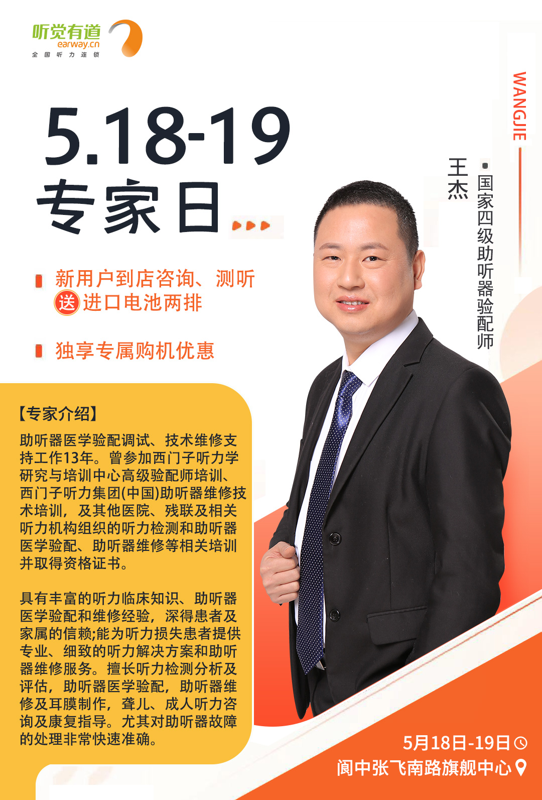 為了更好地服務聽損人士,帶來高質量的聆聽感受,聽覺有道全國聽力連鎖將持續開展專家入店活動。