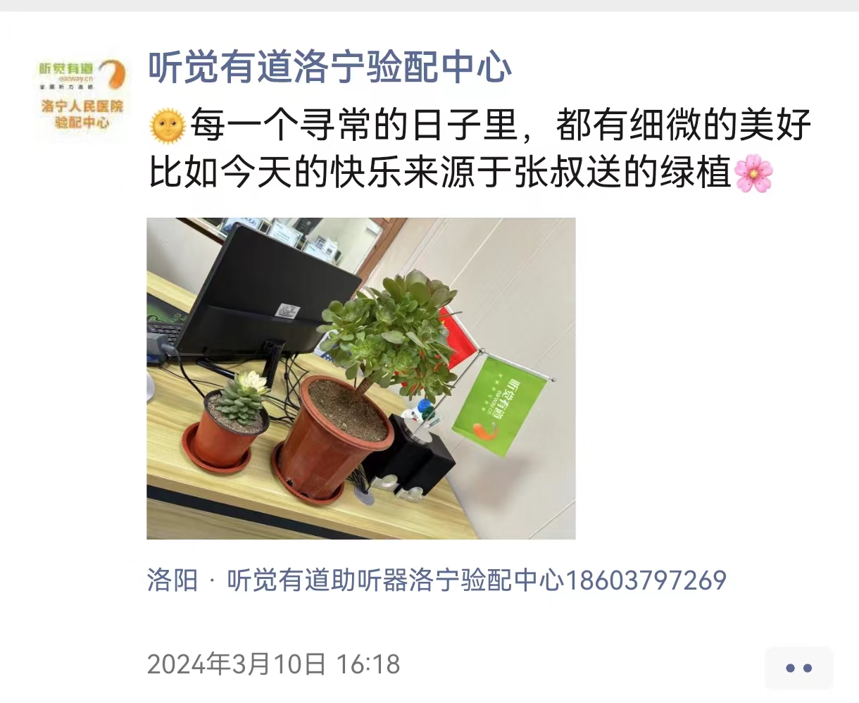 <span style="white-space:pre"> </span>又是一年春好處。<br /><br />  每年春天,張叔的花攤上總是擺滿各種絢爛奪目的花兒。每一片花瓣,都像是一抹柔和的微笑,讓人感到平靜和溫暖。<br /><br />  <strong>張叔靠花草養家<br /></strong><br />  張叔是個養花人,今年70歲,家住王東小區。<br /><br />  張叔說,在兒子還很小的時候,自己沒有別的手藝,就是喜歡擺弄那些花花草草。<br /><br />  經過他“伺候”過的花草,都開得特別好。當時他就有一個想法:不如拿它們來養家糊口吧。<br /><br />  然而,那時家人和親戚都不太支持他這個想法,認為這是不務正業的。<br /><br />  畢竟,在那個年代,柴米油鹽很貴,找個穩定正經的工作,順順當當地養活家人,才是最重要的。<br /><br />  “但是,養好花花草草也是一門職業技術啊!”<br /><br />  張叔下定決心,要把養花作為一生的工作。<br /><br />  他開始每天鉆研各種養殖花草的資料,向別人請教怎樣養花種草,問大家都喜歡什么樣的花。<br /><br />  張叔有一輛電動三輪車,無論是去縣城周邊,還是到遠點的地方趕集,他都會騎著三輪車,載著滿滿一車的花草過去。<br /><br />  夏天的雨很大,他仍舊拉著一堆花草守在集市里。<br /><br />  冬天的風很冷,他總在落日時分才踏上回家的路。<br /><br />  日復一日,年復一年,家人們看到了張叔的熱愛與堅持,便不再反對了。<br /><br />  “不夸張地說,這些年我記的筆記,可以用堆積如山來形容!”<br /><br />  說這句話時,張叔滿臉的驕傲。他不僅把花草養得很好,也靠它們把家人都養得好好的。<br /><br /></span><p><span style="font-size:16px;">  也許,家人就是他心中最重要的“那些花兒”。</span></p><p><span style="font-size:16px;"><br /></span></p><p style="text-align: center;"><img src="/upfiles/202403150130547329.jpg" width="640" alt="" /><br /></p><p><br /></p><span style="font-size:16px;">  <strong>跨越數百里的信任</strong><br /><br />  我們和張叔結識是在2023年。<br /><br />  當時我們到大原做聽力科普宣傳,經過張叔的花攤。<br /><br />  他戴著個帽子,不胖不瘦,個子高高的,愛說愛笑。<br /><br />  作為助聽器驗配師,我們很容易就注意到他左耳戴著一臺耳背機。<br /><br />  但他跟別人說話時,還是顯得很吃力。<br /><br />  我們停下腳步,跟他聊天交流,了解他的聽力情況,希望能給他帶來一些力所能及的幫助。<br /><br />  張叔的右耳因為從小中耳炎,現在一點聽力都沒有了。<br /><br />  他左耳的聽力,也在十幾年前下降得厲害。<br /><br />  左耳的耳背機是10年前在洛陽三院買的,之后一直沒有保養過。<br /><br />  張叔見我們是專業配助聽器的,把助聽器拿給我們檢查。<br /><br />  接過助聽器,我們發現它耳鉤里面有冷凝水,做了仔細的清潔保養,并給張叔講了一些日常保養維護助聽器的方法。<br /><br />  為了助聽器更穩定的工作,我們也建議張叔定期到驗配中心進行保養,我們為聽損朋友提供免費服務。<br /><br />  之后大半年,張叔有時間就會到我們聽覺有道洛寧人民醫院驗配中心保養助聽器,同時來聊聊家常。<br /><br />  一般的助聽器使用壽命是5到8年,而張叔的助聽器戴了有10年,現在音質和功率都不太能滿足他現在的聽力狀況了。<br /><br />  張叔想換一臺新的助聽器,并最終選擇了聽覺有道。<br /><br />  “我觀察了好久,對你們的為人處世,還有你們公司的品牌售后,都是比較認可的。”<br /><br />  2023年10月,我們邀請張叔到店參加專家日活動,體驗新款的助聽器。<br /><br />  那段時間,張叔去了西安,參加親戚的婚禮。<br /><br />  出于對我們的支持和信任,張叔讓兒子連夜載他從西安回洛寧,橫跨幾百公里。<br /><br />  第二天,他準時到店參加活動,并且配了一臺Beltone Rely系列助聽器。<br /><br />  2024年3月10日,張叔送來了兩盆親手種的綠植,讓我們在這個春天收獲了一份獨特的美好。<br /></span><p><span style="font-size:16px;"><br /></span></p><p style="text-align: center;"><span style="font-size:16px;"><img src="/upfiles/202403150131189662.jpg" width="640" alt="" /><br /></span></p><p><span style="font-size:16px;"><br /></span></p><span style="font-size:16px;">  <strong>熱愛永不改變</strong><br /><br />  有一天,張叔來保養助聽器。<br /><br />  我問他,現在生活好起來了,兒子有了自己的工作,他也已是古稀之年,以后還會繼續賣花嗎?<br /><br />  張叔點了點頭,朗聲笑了起來。<br /><br />  “當然會啊!我還是很喜歡養花,一直都沒有改變過!”<br /><br />  文章來源:聽覺有道洛寧人民醫院驗配中心</span>" />